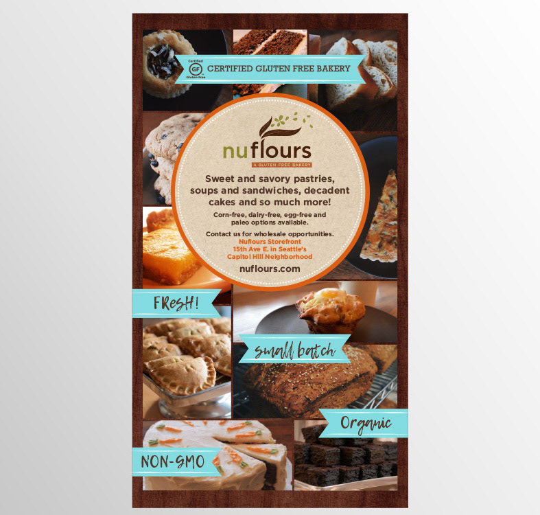 Delicious looking signs that immediately communicate nuflours' top selling points.